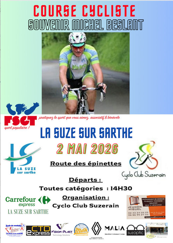 Attention 2 Mai Course la Suze sur Sarthe et non le 5/09