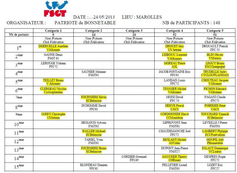 Samedi 24 mai la Patriote de Bonnétable organisait une épreuve fsgt à Marolles les BraultsToutes les phottos sur —> à JP Hoguin