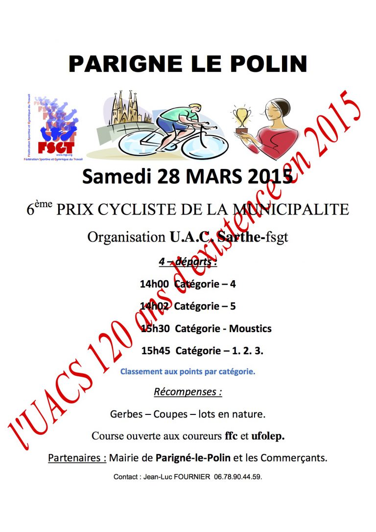 Bonjour à tous Pour bien démarrer la saison route 2015 n'hésitez pas à consulter le reglement et challenge fsgt 2015 inserer dans la rubrique"Challenge 2015+Regl Dept" bonne saison à tous (coursiers, organisateurs, partenaires sans oublier nos amis les bénévoles et…