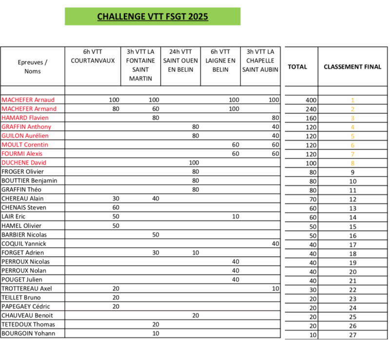 Le challenge VTT en rouge ils seront récompensés à la soirée